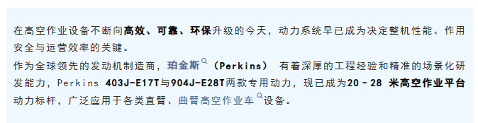 高空作业平台动力标杆|珀金斯以专业引擎,助力高效出勤