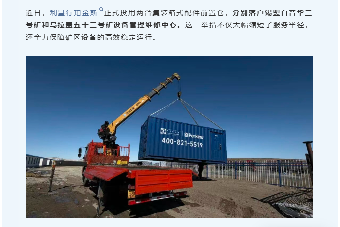 利星行珀金斯配件前置仓落地内蒙古矿区,全力保障设备高效稳定运行